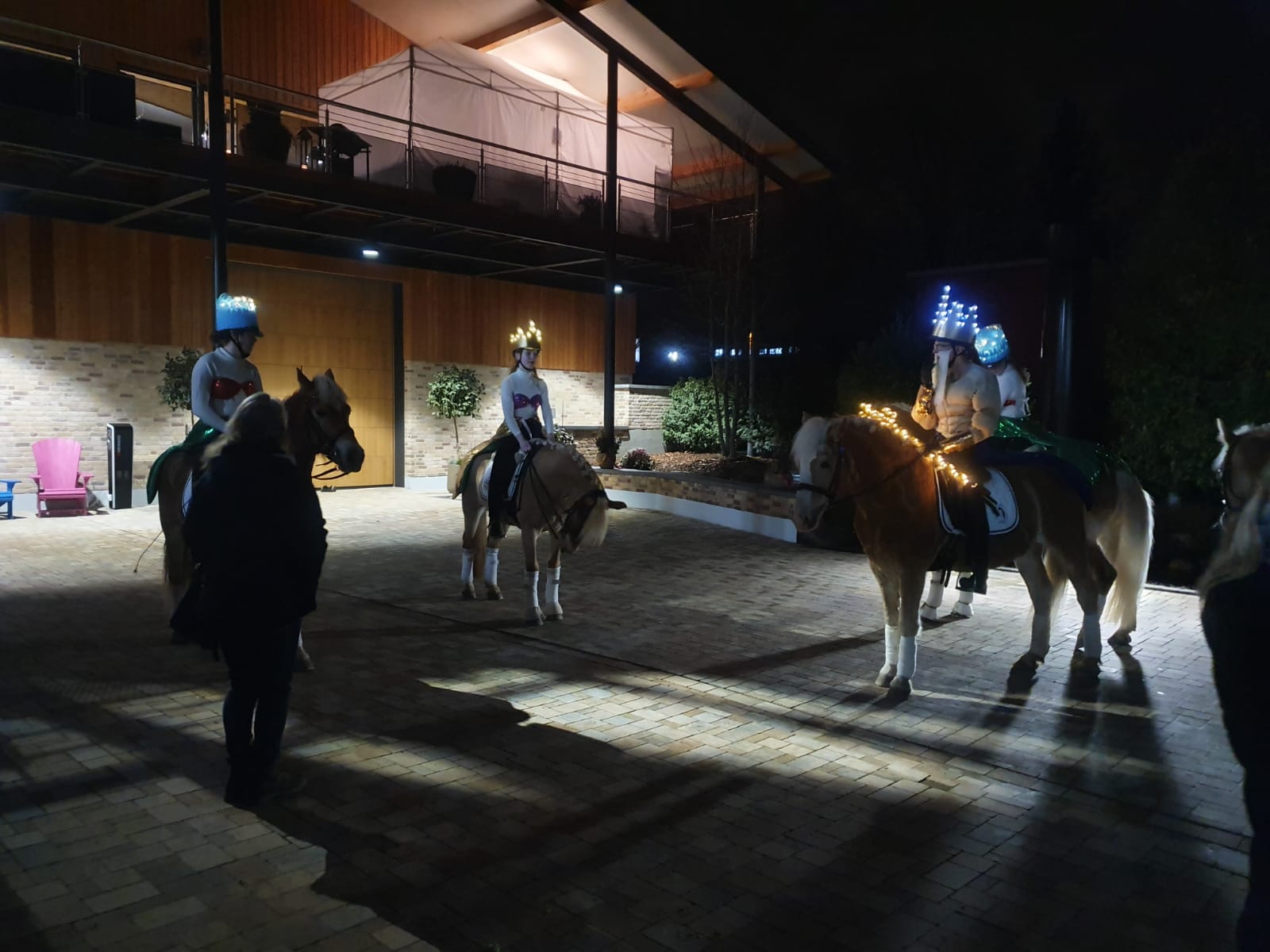 Am Abend des 30. Januars war es dann soweit und 10 Reiter-Pferd-Paarungen entführten die Gäste ins „blaue Meer“ zu Arielle und ihren Freunden. Kurz vor dem Auftritt wurde die Choreografie nochmals zu Fuß abgegangen und Ponys und Reiter in die Kostüme geworfen. Trotz der kurzen Vorbereitungszeit zeigten die Mitwirkenden eine sehr schöne Quadrille und durften neben dem Lob der Gäste noch ein kleines Dankeschön von Herrn Peiker persönlich entgegennehmen.