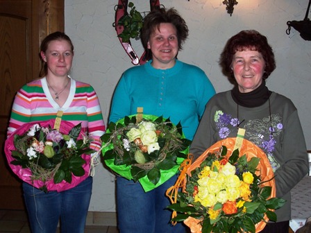 Blumen gab es auch für Ute Hirsch, Angelika Bobrich und Ilka Balser für die geleistete Arbeit in den vergangenen Jahren. Urkunden und Plaketten für langjährige Mitgliedschaft im HHV ( 10- 30 Jahre) erhielten etliche Vereinsmitglieder.